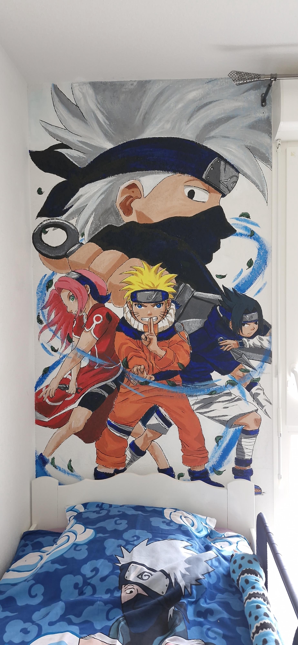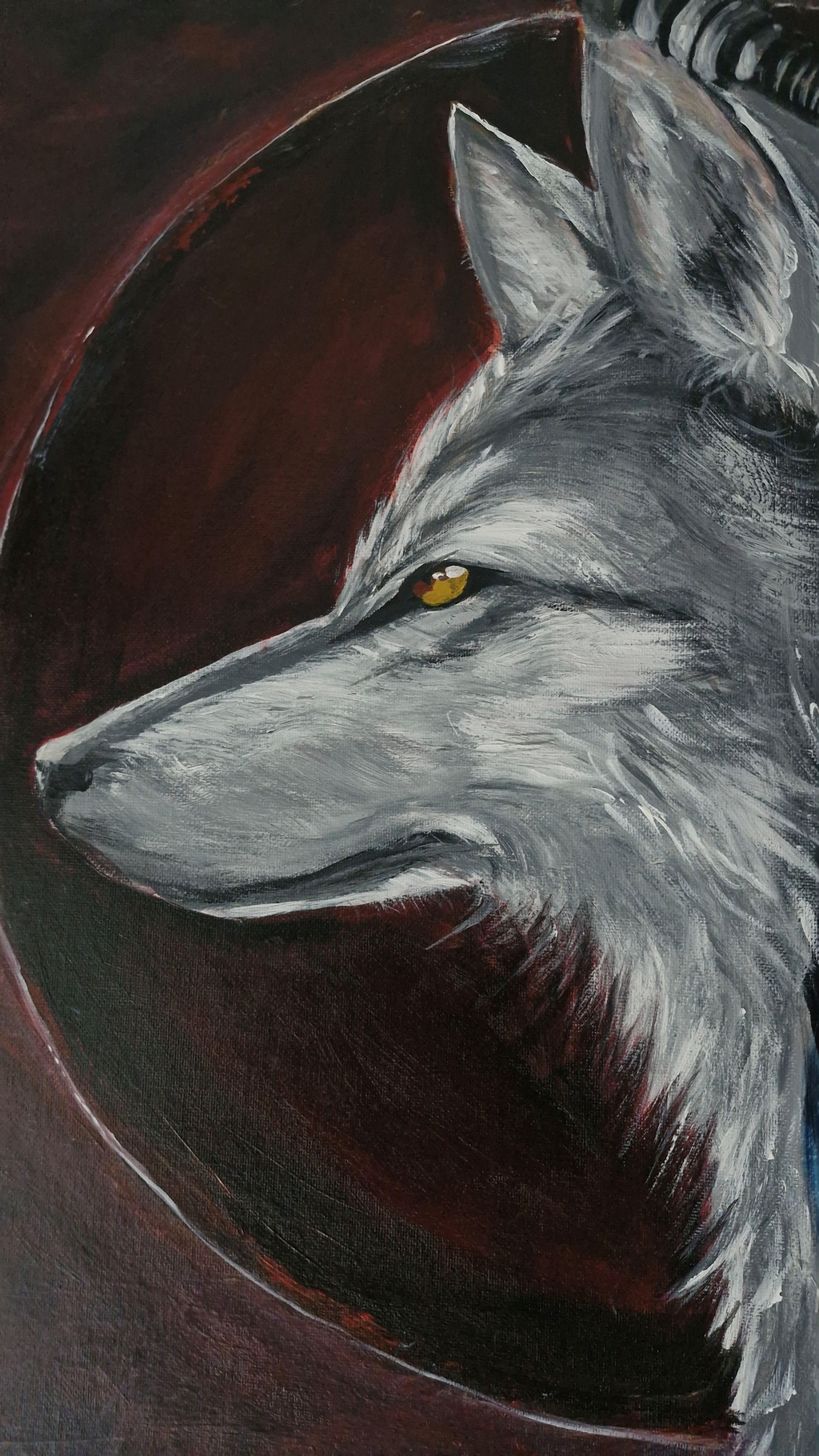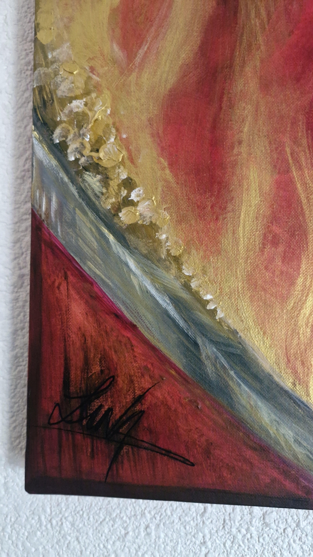 Toile peinte à l'acrylique avec deux couches de vernis satiné.