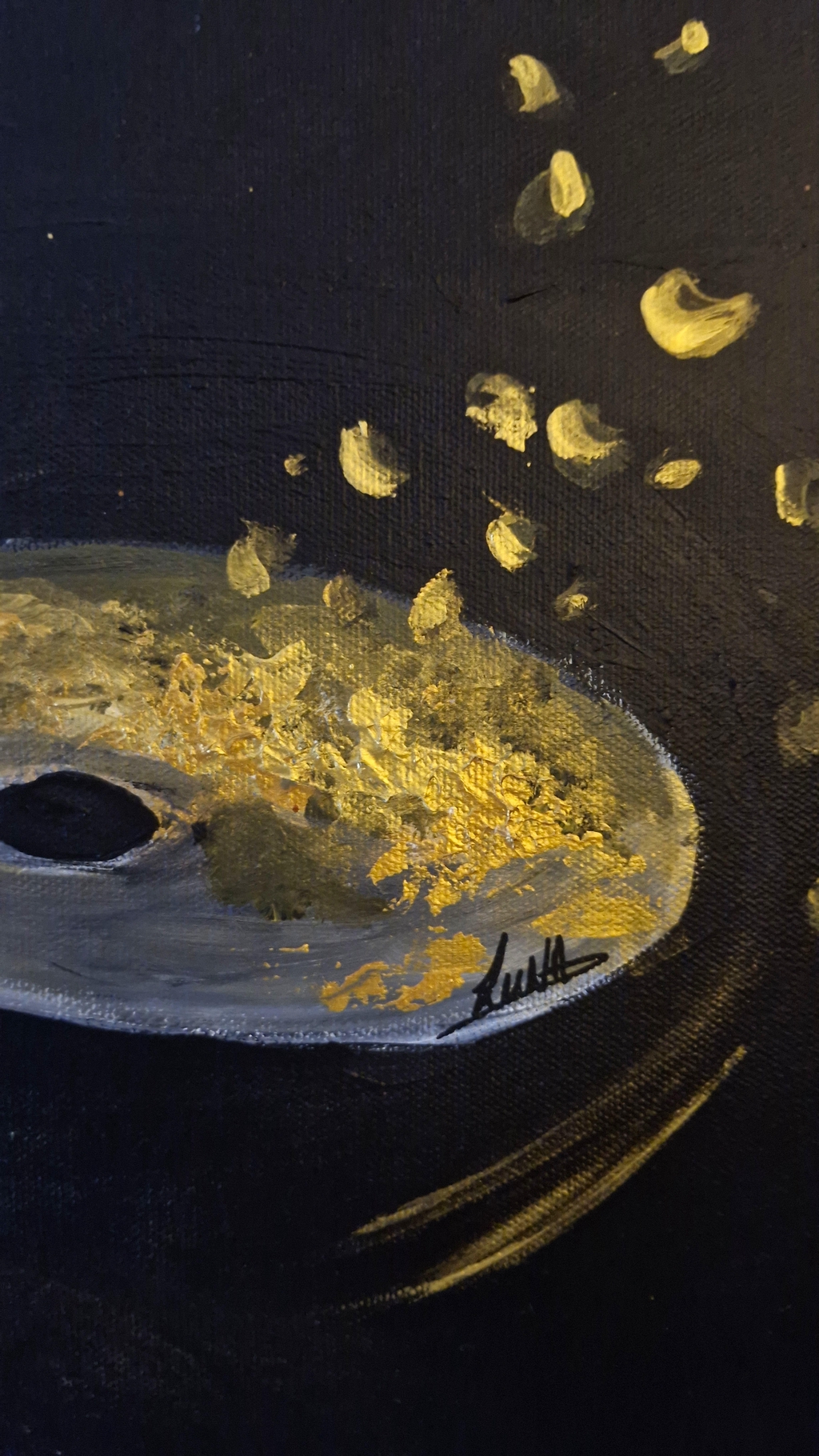 Toile peinte à l'acrylique avec deux couches de vernis anti UV satiné.